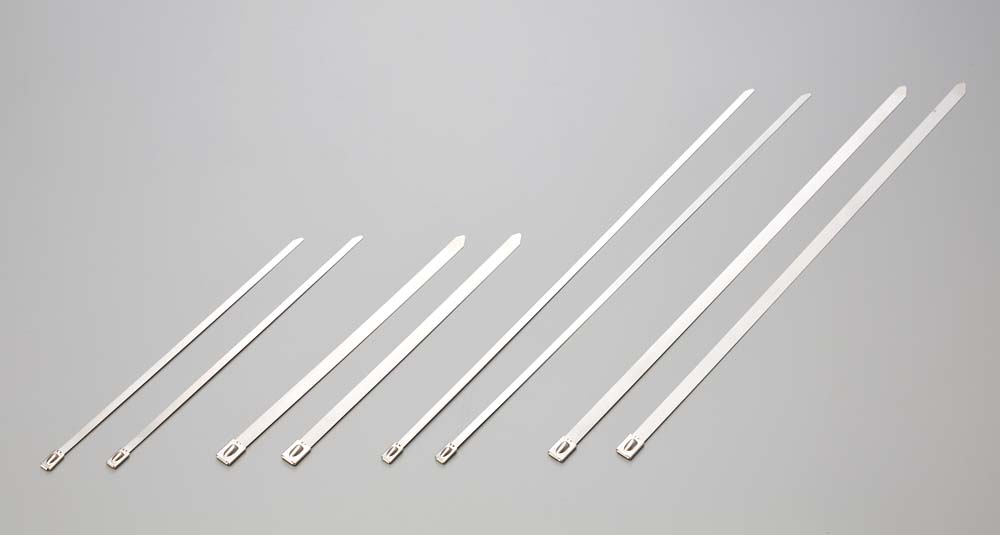 • ステンレススチール製(帯部SUS316、頭部SUS304)の結束バンド。
