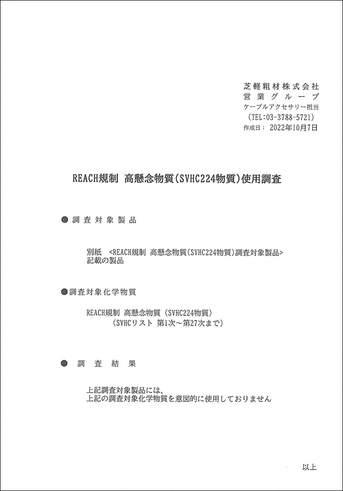 REACH規制 高懸念物質(SVHC224物質)使用調査